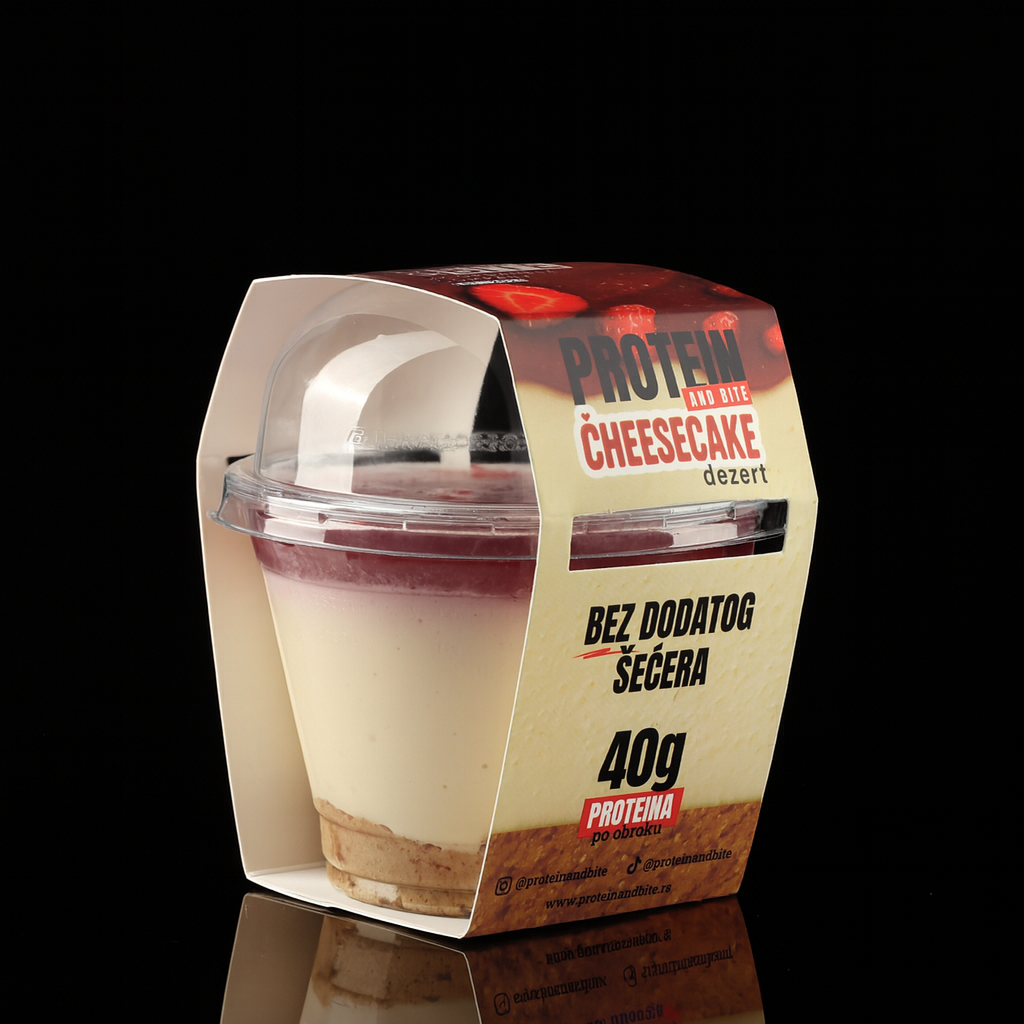 Kremasti, bogati i savršeno balansirani – naš Proteinski Cheese Cake je prava poslastica za sve ljubitelje slatkiša koji žele da uživaju bez griže savesti. Sa visokim sadržajem proteina, ovaj desert spaja bogatstvo kremastog sira i prijatan, blagi ukus vanile, a sve to bez previše kalorija. Savršen za oporavak posle treninga ili kao zdrava užina tokom dana, naš protein cheese cake je idealan za one koji žele da zadovolje svoju želju za slatkim na zdrav način. Uživajte u luksuznom ukusu bez šećera i visokim sadržajem zadovoljstva! Sastav: Plazma diet, rikota sir, urda, ella sir, grčki jogurt, whey protein od vanile, stevia,maline,jagode, ribizle, zelatin, mivolis zasladjivač.